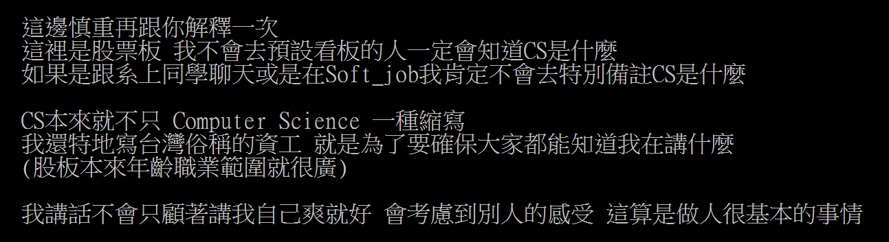 9F→empliu: 我不懂欸 CS到底有什麼好酸的 10/20 11:14